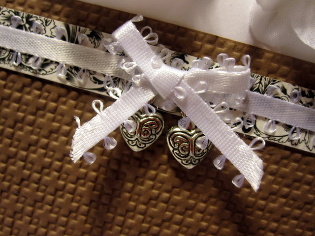 Left Photo: Page 6 The toast close-up. Stardust Stickles is added to the glasses for t hat sparkle. Silver ties and metal heart charms on each glass. (so sorry - photo missing because I keep trying to fix the layout of this post)