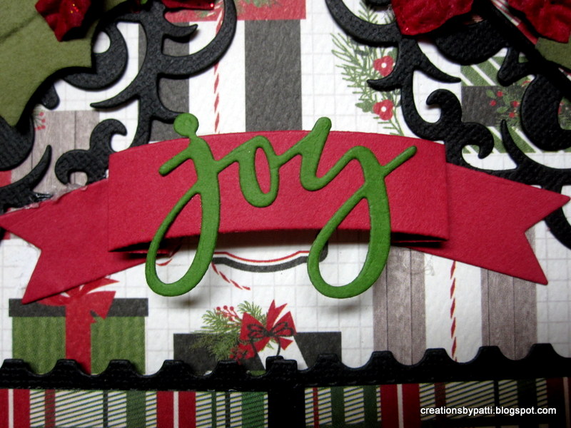 A red Folding Banner die here with a die cut "joy" (new release for July 2017) sits on top of the banner.